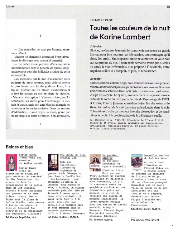 - Bazar magazine, un article de Julie Nysten datant du 14 vévrier 2019.
